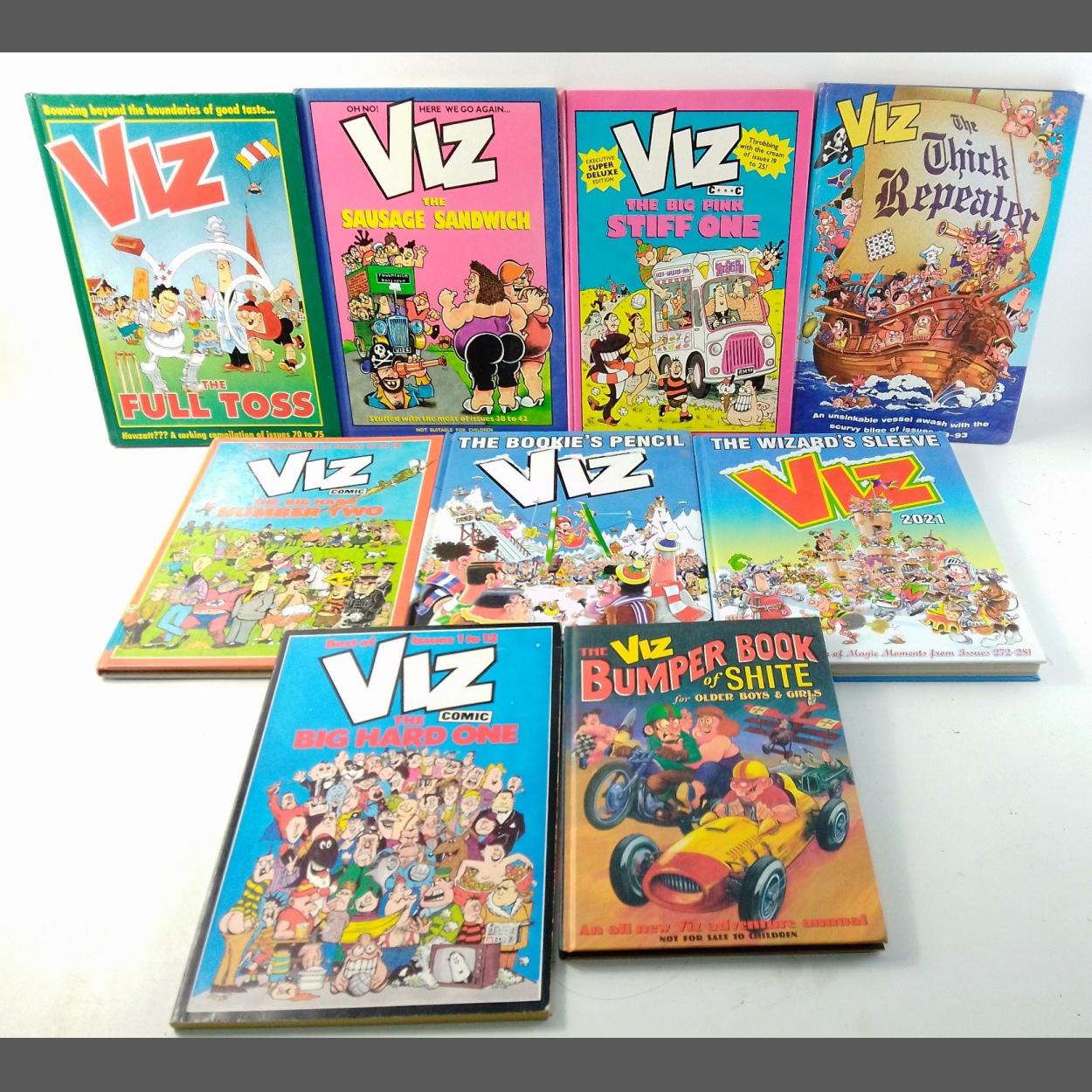VIZ. A wonderful collection of annuals. The Big Hard One, The Big Pink Stiff One, The Sausage Sandwich, The Full Toss, The Thick Repeater, The Big Hard Number Two, The Bookies Pencil, The Wizards Sleeve and the Bumper Book of Shite.