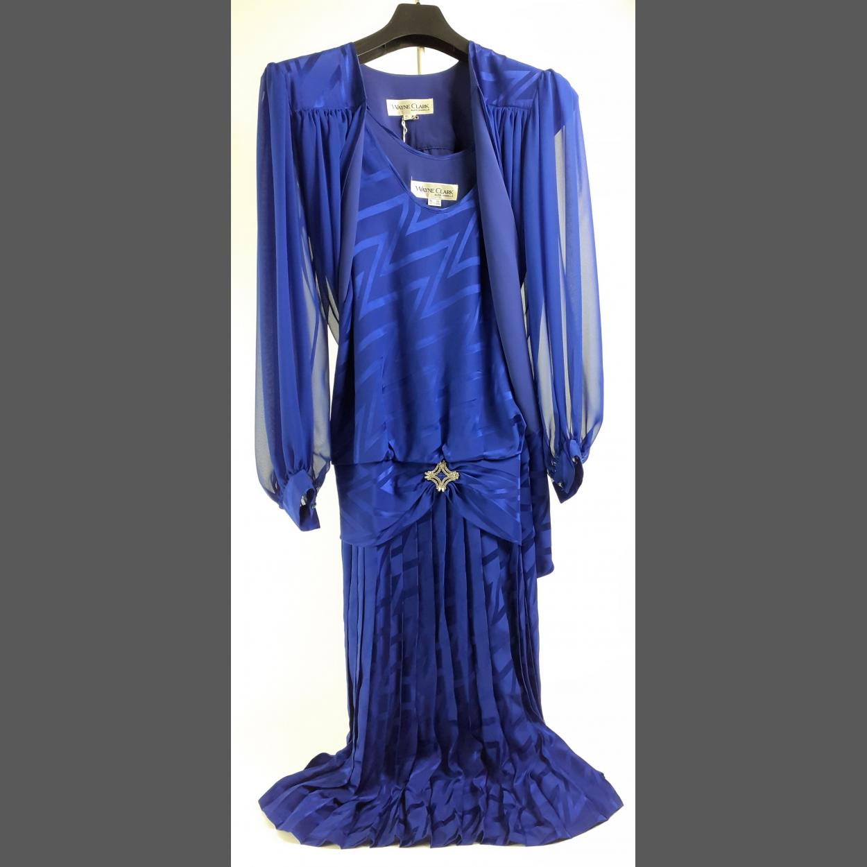 Wow! A vintage WAYNE CLARK Aline Marelle size US 8 sleeveless dropped waist dress in blue with matching sheer jacket