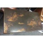 An ORIENTAL themed kneehole with seven drawers with a hidden cupboard behind the kneehole - dimensions width 88cm x depth 49cm x height 76cm approx - for info this desk comes in one piece.