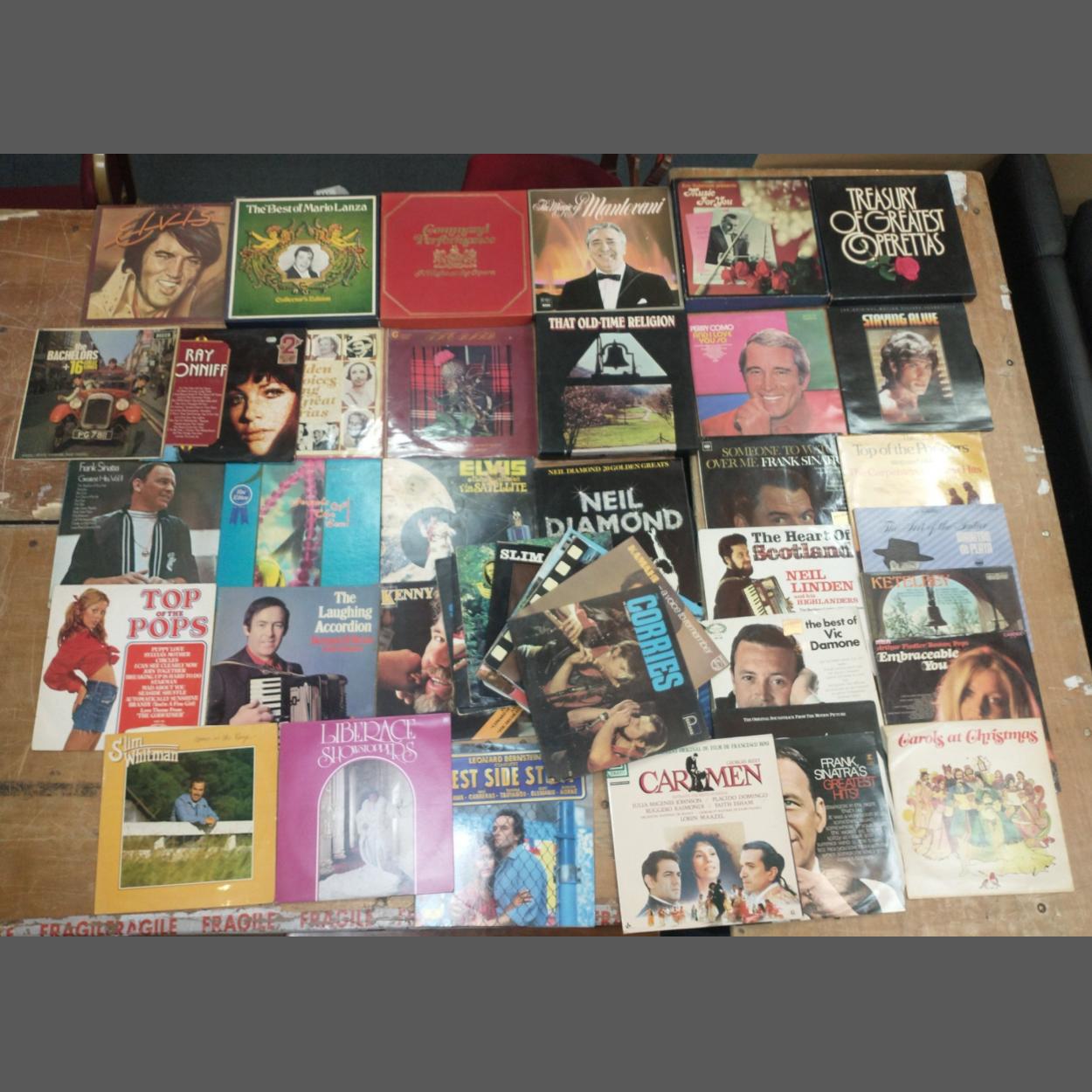 A collection of classical and easy listening LPs with some movie themes including box sets such as The MAGIC OF MANTOVANI, the Alexander Brothers, CARMEN, WEST SIDE STORY, FRANK SINATRA