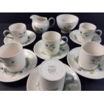 Lovely WEDGWOOD Woodbury pattern coffee set comprising six coffee cans with saucers, milk and sugar.