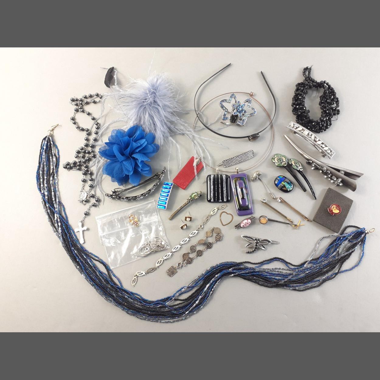 A collection of attractive hair embellishments to add colour to any hair arrangement plus some costume jewellery and 925 marked chains