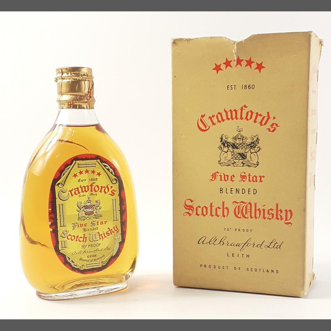 1950s CRAWFORDS Five Star Scotch Whisky vintage boxed whisky. 75cl. Bottle stands 18cm tall.