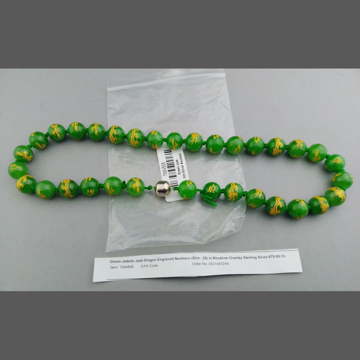 GEMPORIA - Green jadeite jade dragon engraved necklace with 925 magnetic catch in rhodium overlay sterling silver 670.00cts, length 50cm approx.