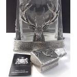 A E WILLIAMS British Pewter Stags Head decanter. Stylish, solid and impressive piece. In box with paperwork.