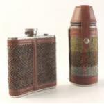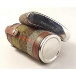 A HARRIS TWEED hip flask plus one other with cup for a nip.