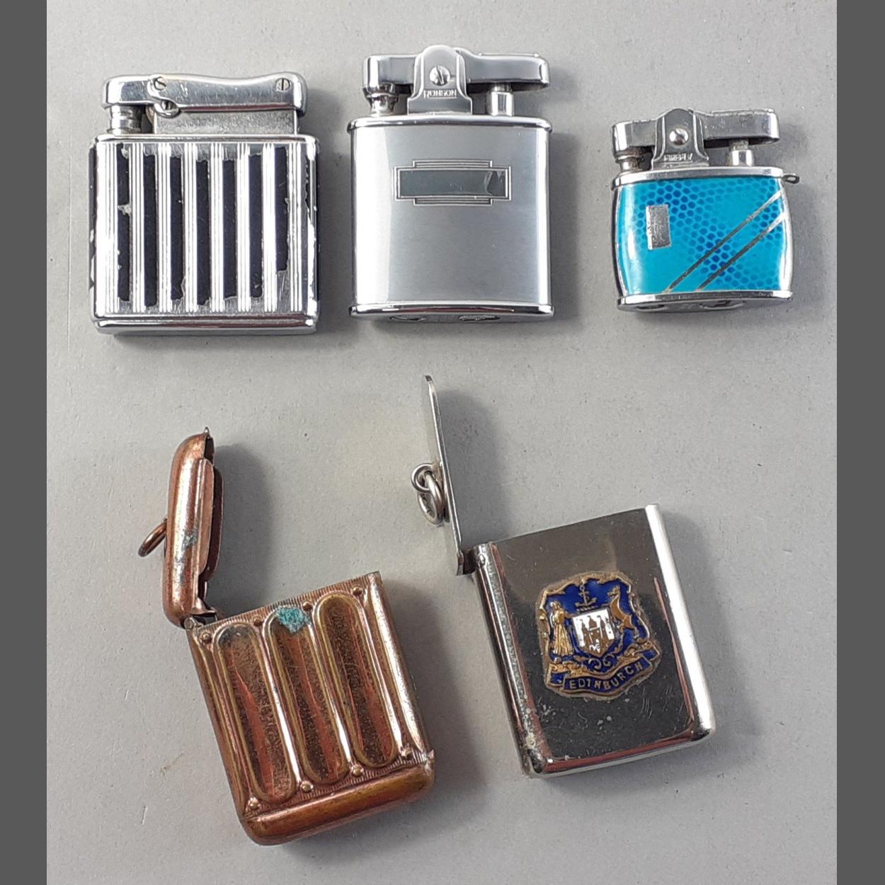 A small collection of three older lighters, Ronson, Firefly, Colibri and two vestas. Please note this lot is non-postable