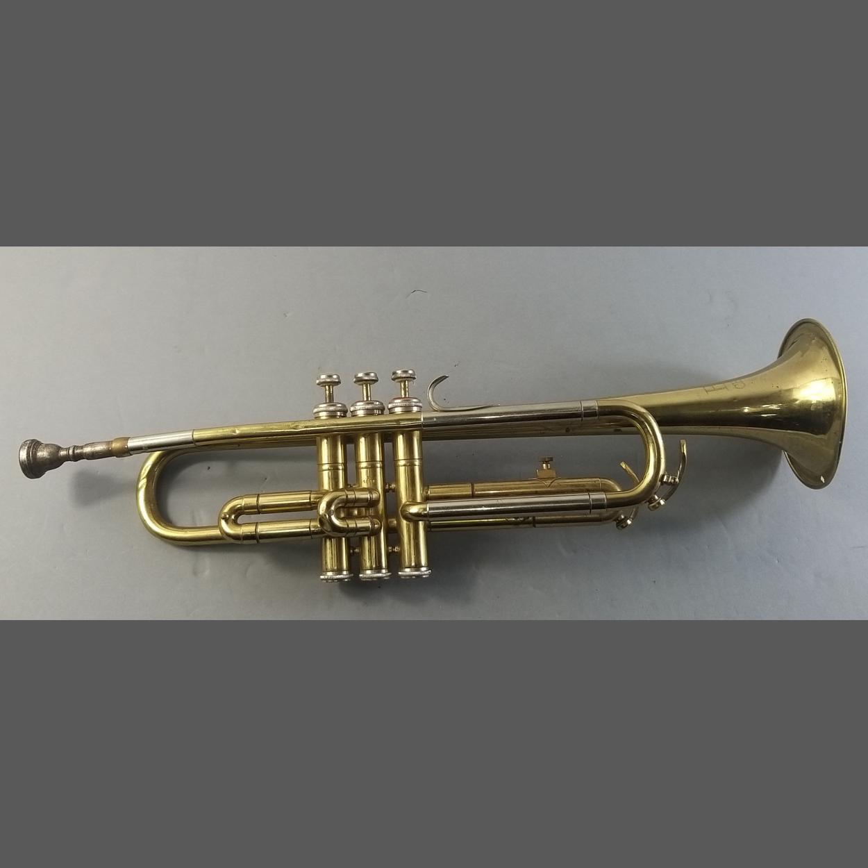A brass trumpet. B&M CHAMPION with Yamaha mouthpiece. Appears to be in generally good order.