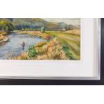 Local Border Artist T.J. BERTRAM original watercolour. River Tweed near WALKERBURN. Professionally framed. 55cm x 45cm approx.