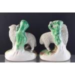 A pair of very appealing late Victorian pottery ram & ewe spill vases in very good clean undamaged condition, minor firing crack noted to one base. 12cm tall, 10cm wide approx. A very good example of the type.