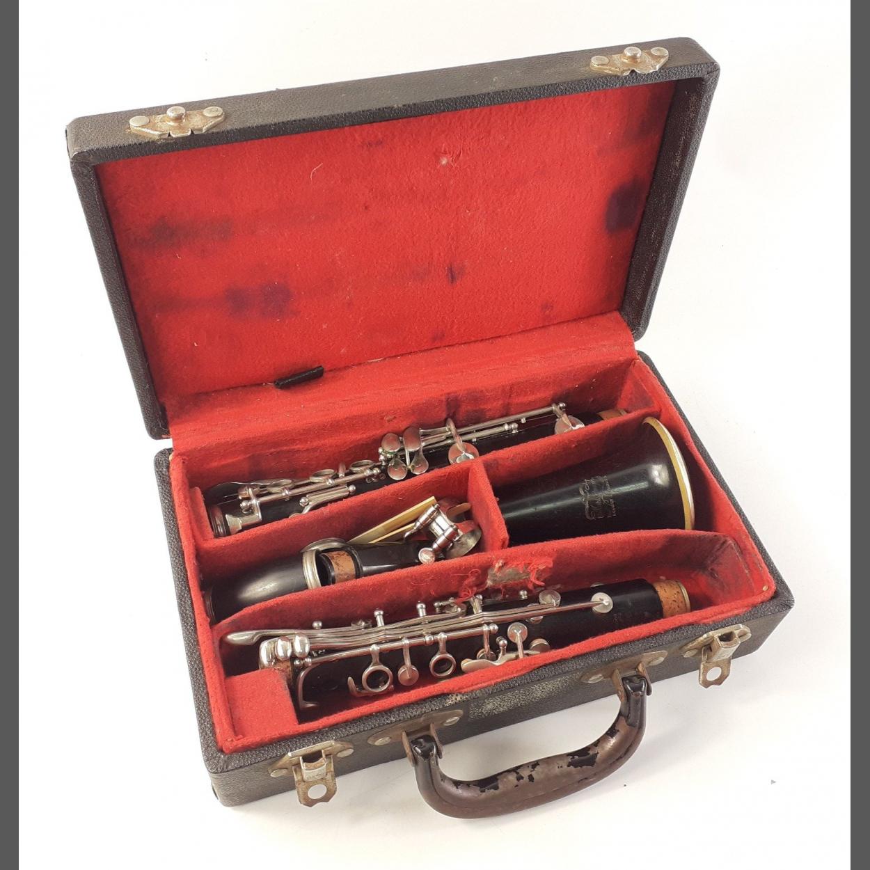 A cased BOOSEY & HAWKES Marlborough wooden clarinet in good complete used condition.