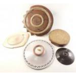A super collection of five studio pottery dishes / platters. The largest (36cm) marked AR76. One shaped as a fish. Another by DAVID ALEXANDER. A super decorative and useful lot