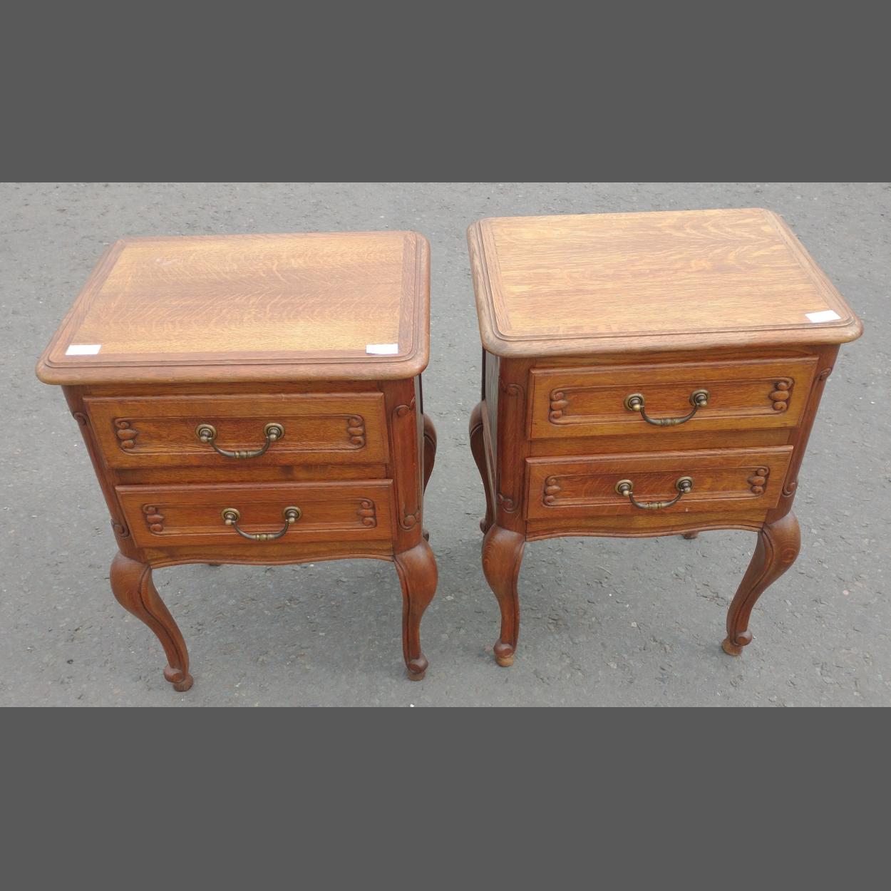A pair of useful wooden bedside tables with drawers. Dimensions 66 x 49 x 39cm approx.