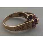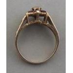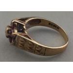 A pretty 9ct gold hallmarked ring with small diamond centre stone with floral pattern red stones (one missing). Size L, gross weight 2.85g approx.