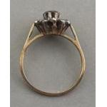 A pretty gold 9ct hallmarked ring with floral cluster with diamonds, one missing. Size L, gross weight 1.8g approx