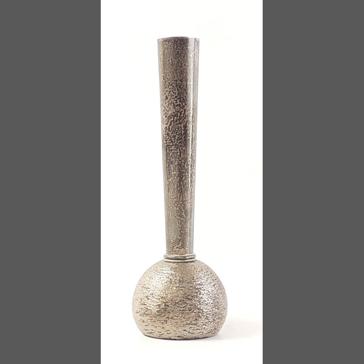 A very stylish silver hallmarked single flower vase. 13cm approx. Hallmarks for Birmingham 1969. Maker D&F. Gross weight 149g approx (weighted base).