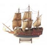 A wooden model of a sailing ship. 50cm approx. A little dusty but appears complete.