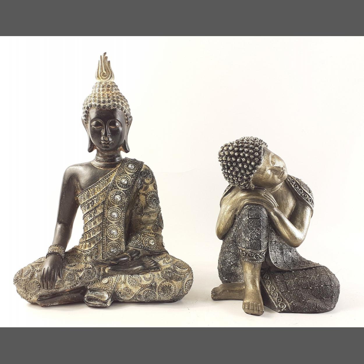 A pair of modern decorative resin THAI Buddha ornaments, the largest 34cm.