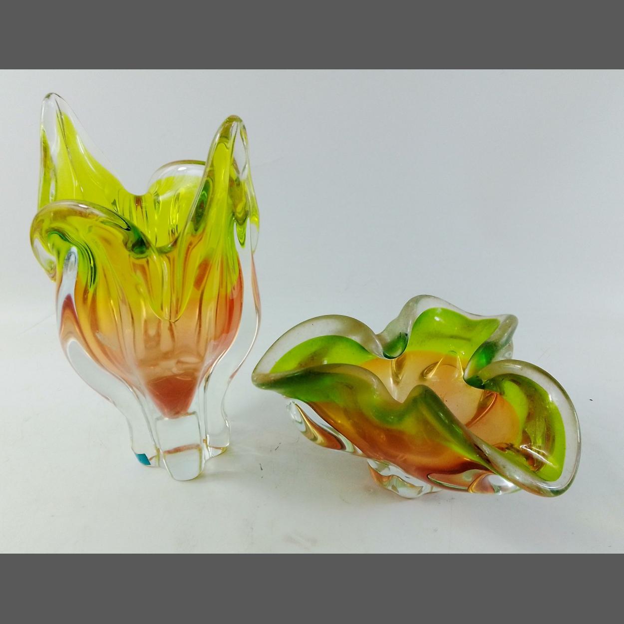 Two pieces of RETRO colourful VENITIAN glassware, the tallest 24cm approx. Both in good undamaged condition. These are large pieces!