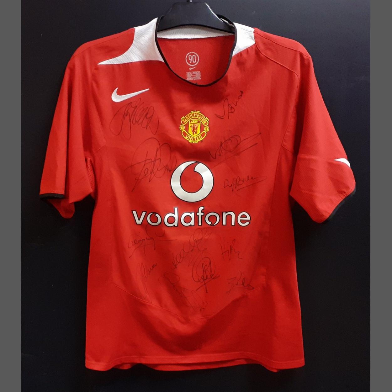 MANCHESTER UNITED. Signed Football Top. Nike made, Vodaphone sponsor (2001- 2006) With twelve signatures as shown. Size L