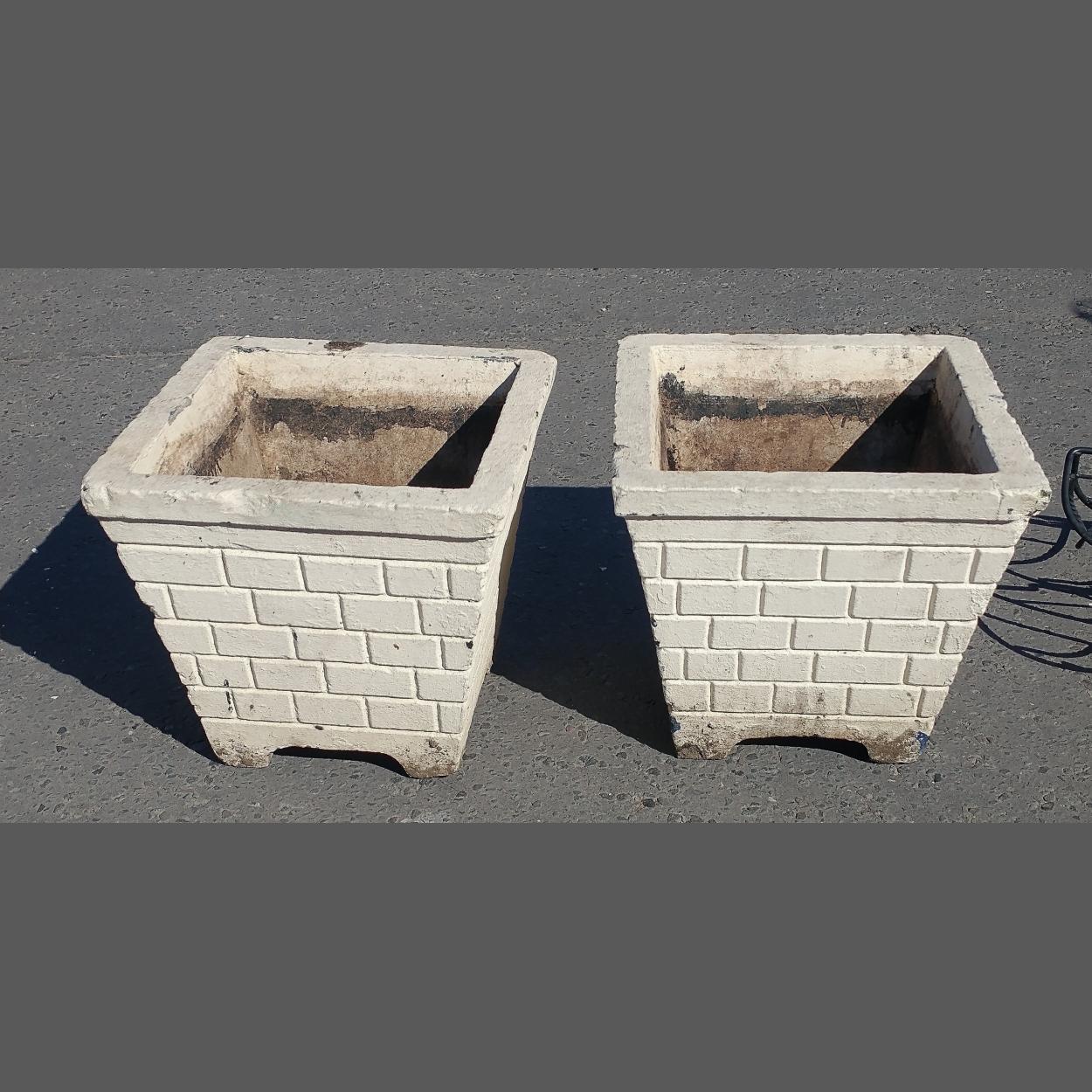 Pair of brick style square planters. L: 44cm W: 44cm H: 41cm approx