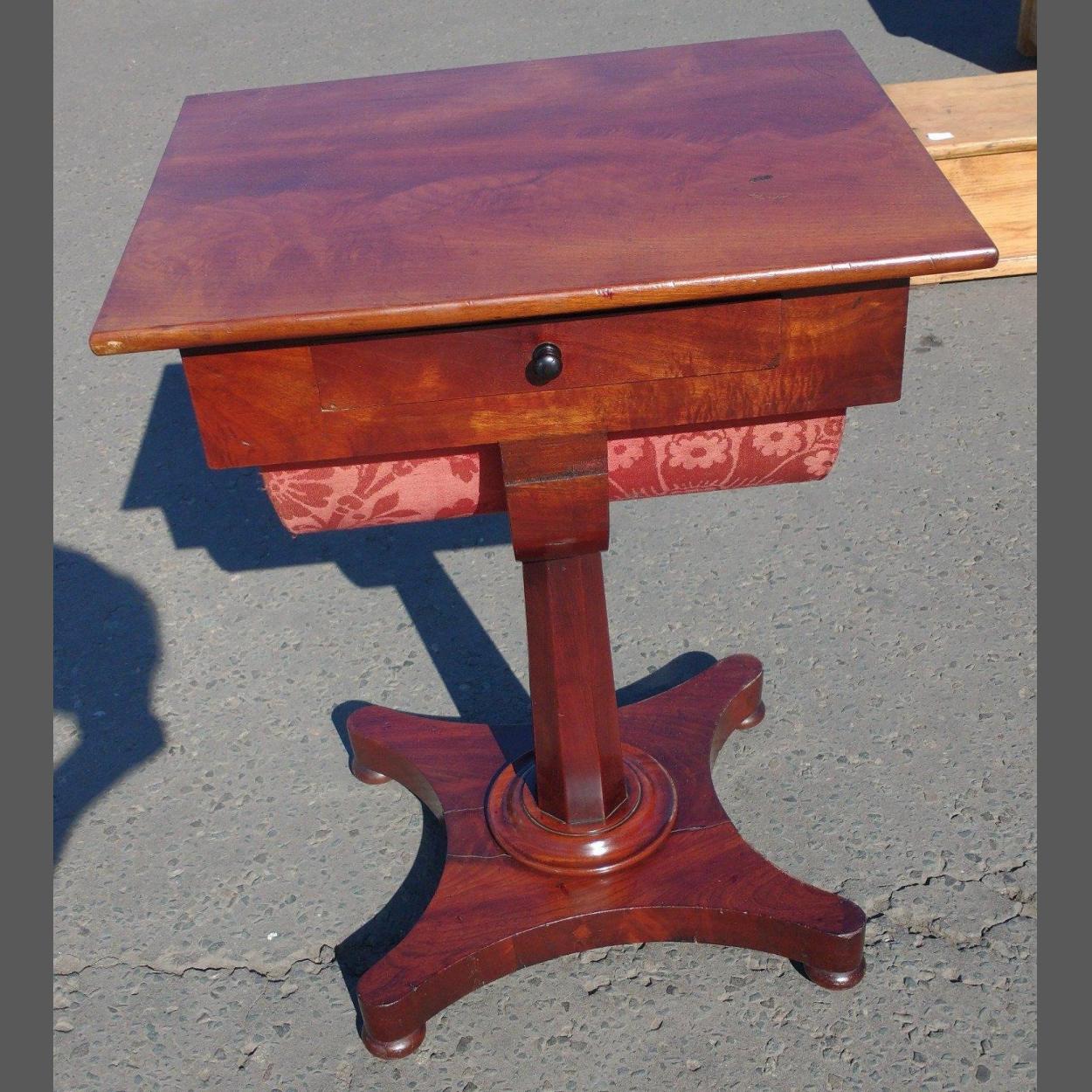 A late VICTORIAN mahogany fine quality pedestal sewing table - dimensions approx 2.5ft height x 2ft width x 18" depth