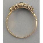 An 18ct hallmarked ring with three light aquamarines and seed pearls. Size P, gross weight 1.89g approx