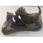 Cute little brass effect model of Cairn Terrier with pup. 16cm approx and in good condition.