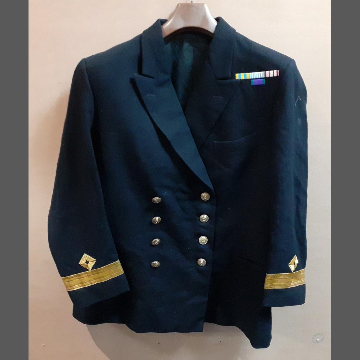 A GIEVES & HAWKES of Savile Row Royal Navy dress jacket with RFA (Royal Fleet Auxiliary) buttons and medal bar with Korea and GSM ribbons. Chest 116cm approx