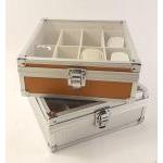 Two metallic eight section watch display cases with 3 cushions. Each measures 20x20x8cm approx