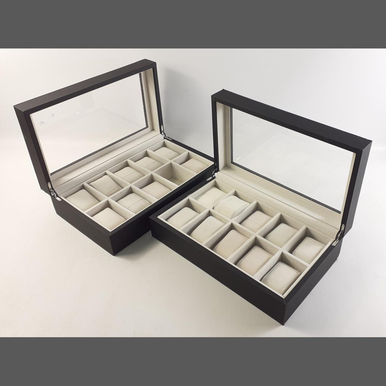 Two padded watch display cases each with 10 sections and cushions each measures 33x20x9cm approx