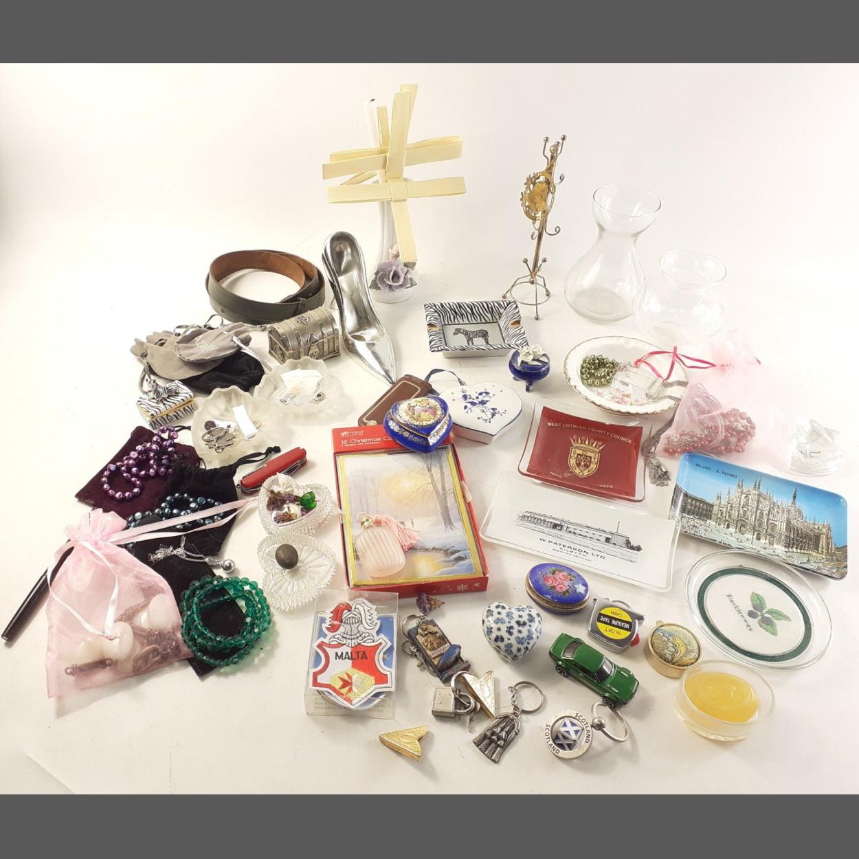 A good mixed collection of decorative actions to include trinket dishes, some small jewellery pieces along with glass vase and much of interest.
