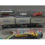 A collection of WORLD of STOBART 1:76 model vehicles in bubble case and outer box to include Charlatte CFB2000E Baggage Tug Cyndy LSA009, Renault Midliner Water Tender "Flo"LSA002, Volvo Excavator W0137, Komatsu PC340 Hydraulic Excavator W122, plus three ATLAS EDITIONS models including a Ferguson TE-20 -1953 plus others