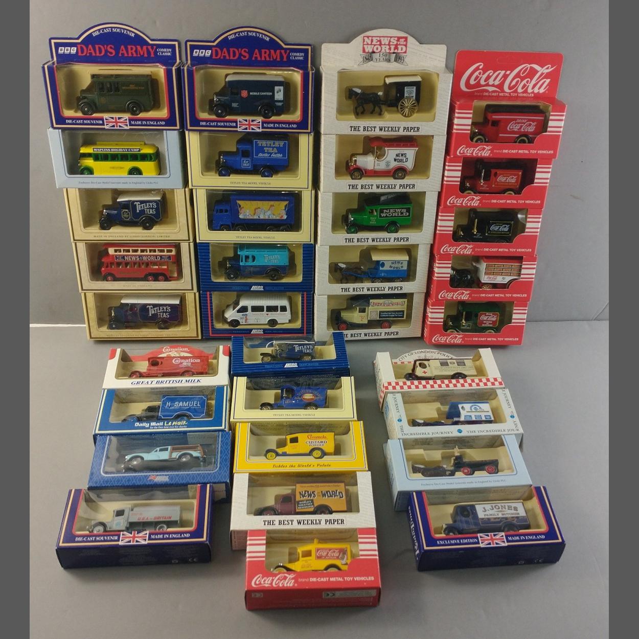 A box of good well stored diecast models. Dads Army range, Coke. 30 models in good well stored condition.