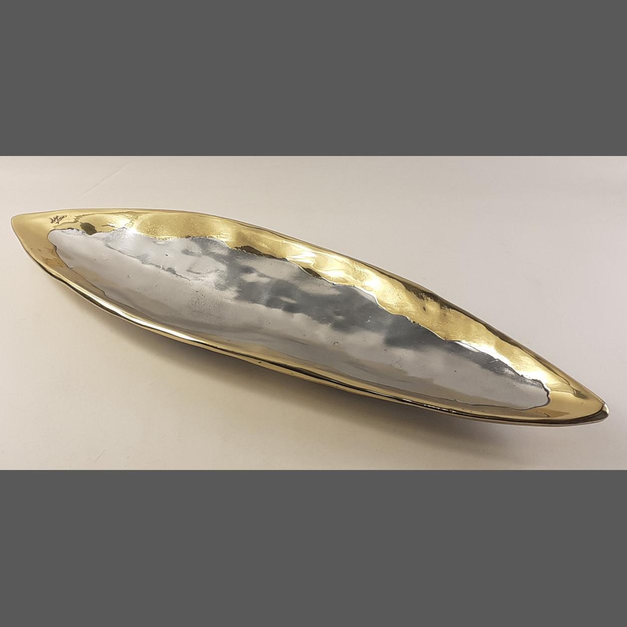 A stunning large DAVID MARSHALL sculpted brutalist art elongated tray in cast brass and aluminium 63cm long by 19cm wide. Signed by the artist.