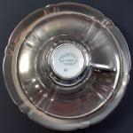 Attractive three piece tea service marked 'STERLING SILVER ON PORCELAIN' comprising 15cm teapot, sandwich plate, cups and saucers. Interesting, stylish and unusual.