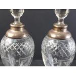 A beautiful pair of antique sterling silver and cut glass perfume bottles with stoppers. Makers London William Henry Sparrow, London S (1913) hallmark. Lovely condition, no chips, cracks etc, stoppers good.