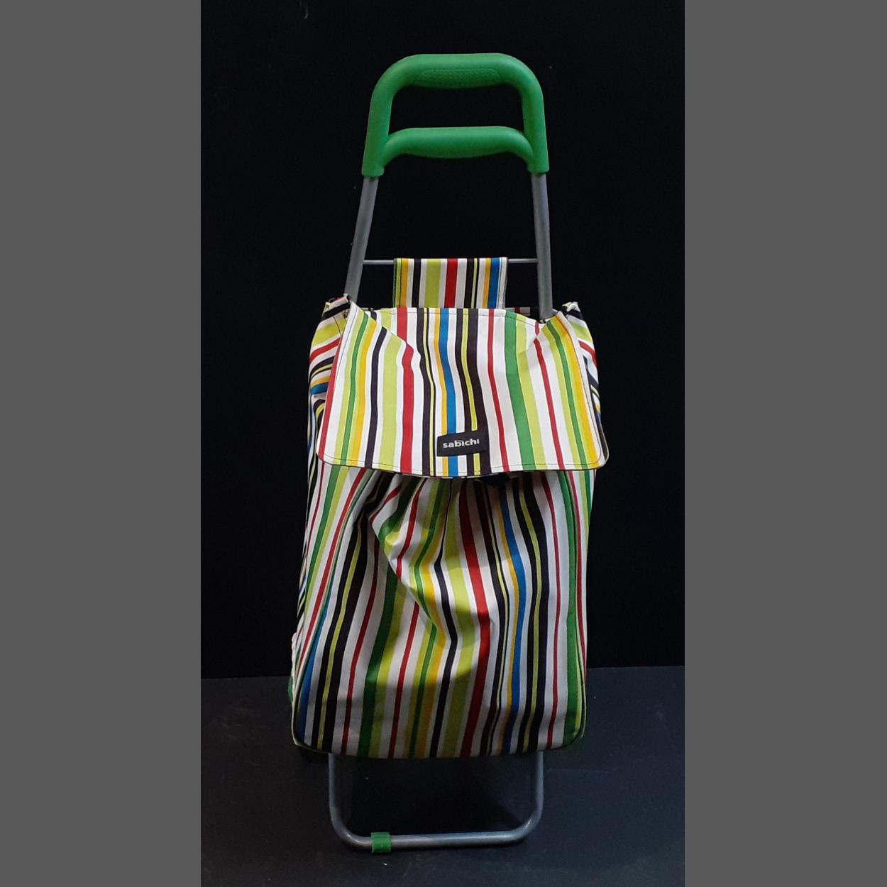 A colourful SABICHI wheeled shopping trolley in good condition.