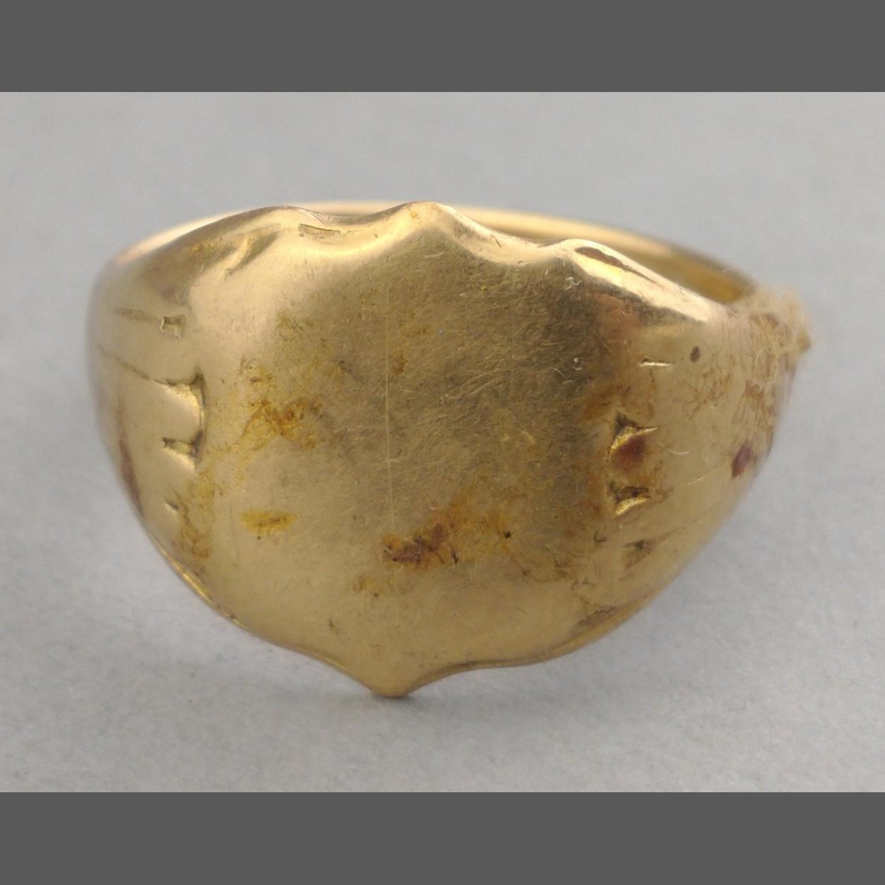 An 18 stamped hallmarked signet ring size P and weight 6.85g approx