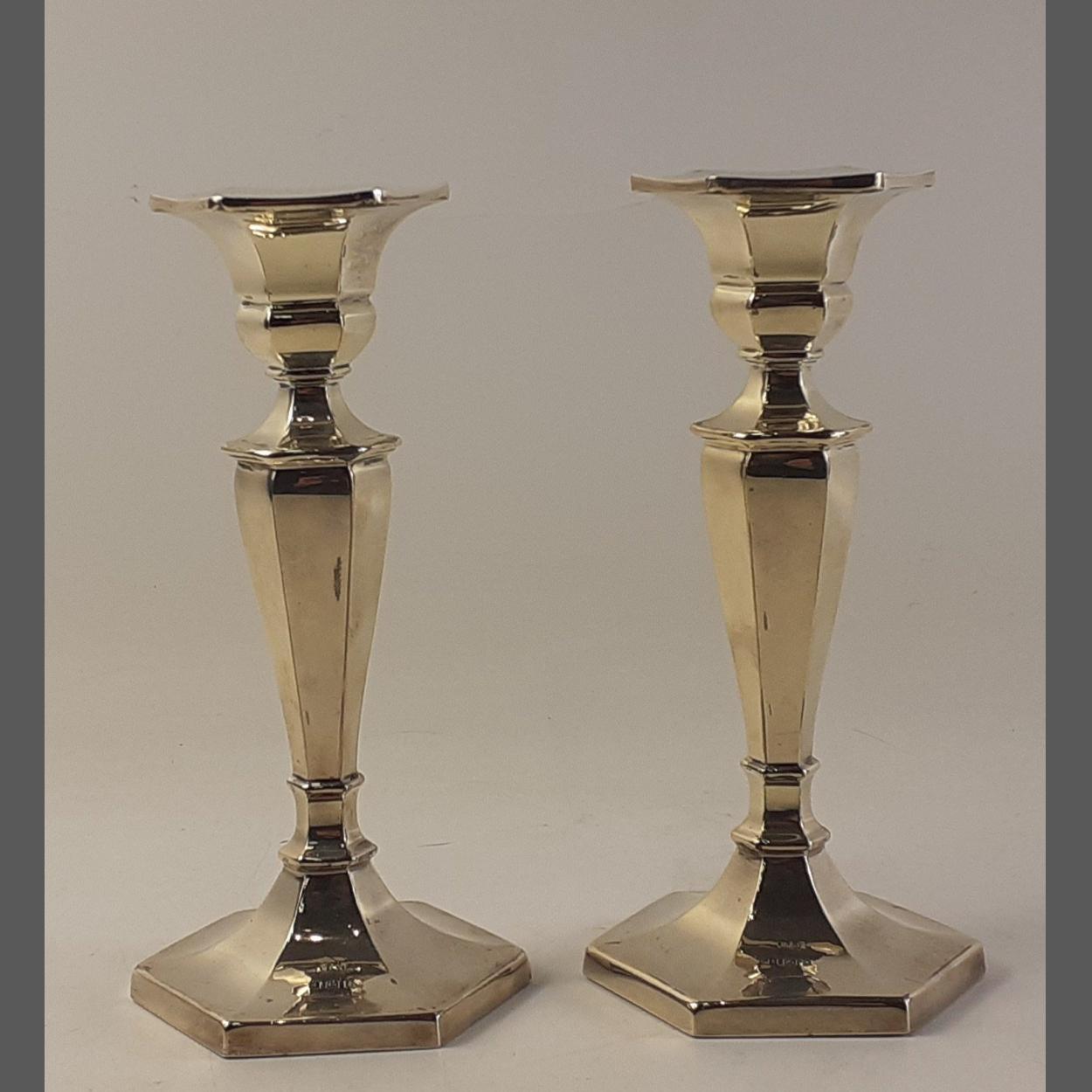 A pair of silver hallmarked candlesticks, Birmingham 1972, each 18cm high approx with weighted bases. Total gross weight 600g approx