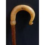 A hickory shepherd's crook, 130cm in length with a horn handle.
