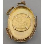 A VICTORIA HEAD FULL GOLD SOVEREIGN 1899 22ct gold - within a large unmarked mount (for info does not react to a magnet) gross weight 14.52g approx - the mount dimensions are 4.5cm height x 3cm width approx