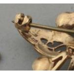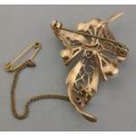 VINTAGE - An indistinct stamped brooch in floral form with 4 pearls - for info this item does not react to a magnet on testing - gross weight 5.30g approx