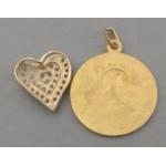 A 750 stamped VIRGIN MARY enamelled pendant - gross weight 3.04g approx -dimension 2cm approx with also an indistinct stamped and hallmarked heart-shaped piece gross weight 1.19g approx