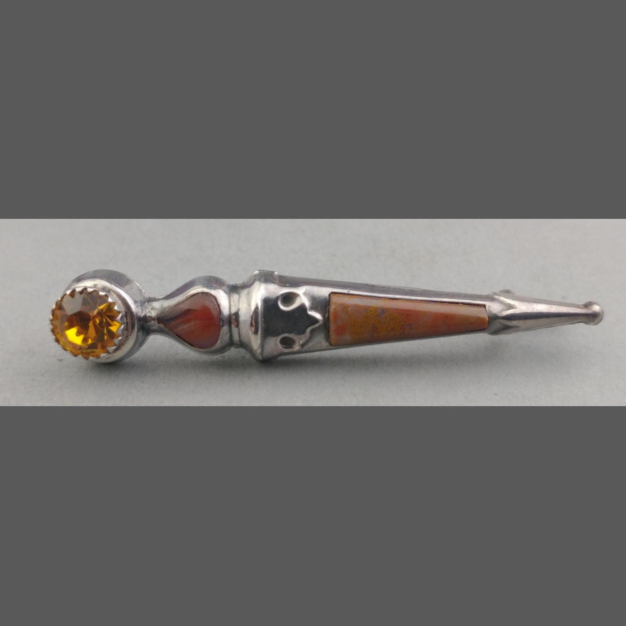 Scottish hard stone sterling silver pin brooch in the shape of a dagger, 5cm approx.
