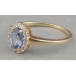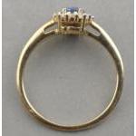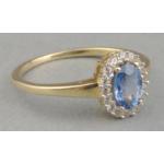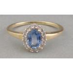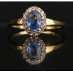 A 375 stamped blue oval-cut INDIAN SAPPHIRE (stone dimensions 6mm x 4mm approx) surrounded by white stones - ring size L - gross weight 1.80g approx