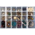 A handy segmented storage box with a good selection of vintage and dress jewellery. Beads, bangles, gilt watch and much more.
