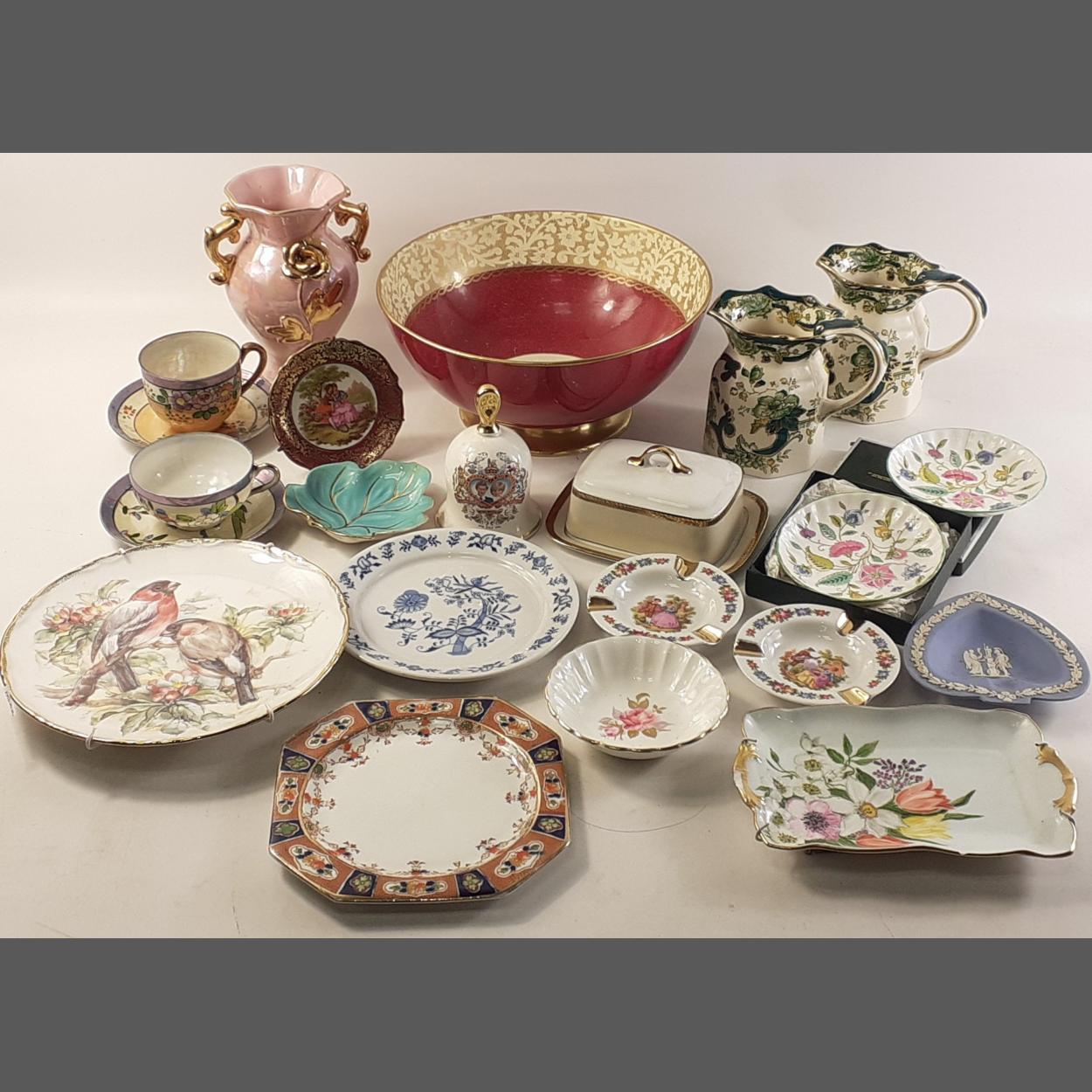 A mixed lot of pretty and useful ceramic items to include 2 MASON'S jugs, Italian vase, MINTON trinket dish, BISHOP ceramic bowl and much else