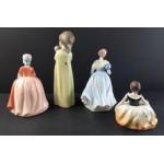 Four attractive decorative ornamental pieces to include little Spanish girl with doll, a 1978 Staffordshire seated girl Francesca and two Taiwan made Ladies. All in good order.