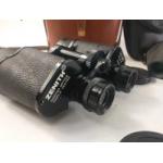 A cased set of ZENITH 10x 50 binoculars, a pair of PENTAX 8-16 x 21 Zoom binoculars and one other set.